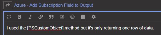 #$Report | Add-Member -Name "Subscription" -MemberType NoteProperty -Value $subscriptionName.Name