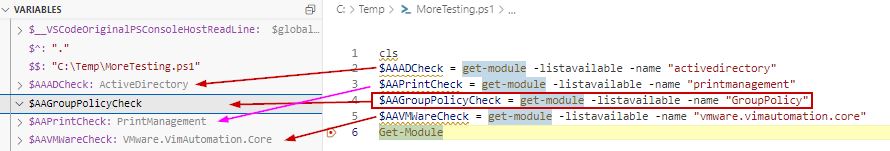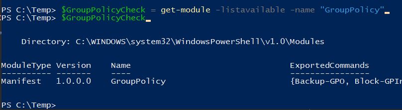 I’m writing this script. The first section of the script is to check and make sure the required modules are loaded in the session to run the different commands. I know I’m missing something small on this but I can’t get the script to find the GroupPolicy module like the rest of the modules. Here’s a screenshot of what I mean from VS Code: