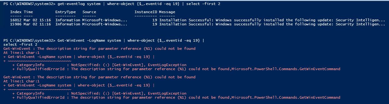 However, Get-EventLog is deprecated, so perhaps you’ll have more luck with Get-WinEvent